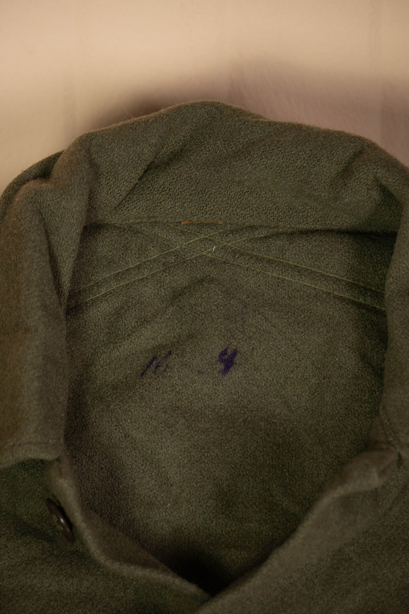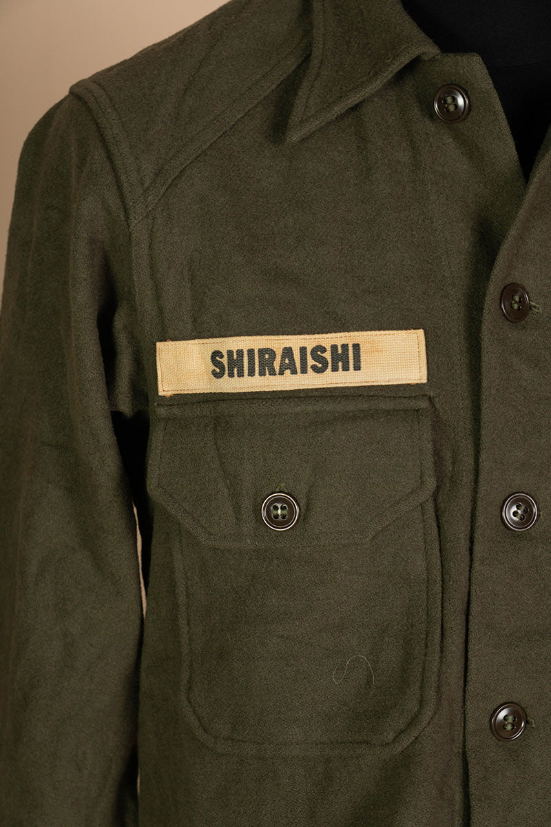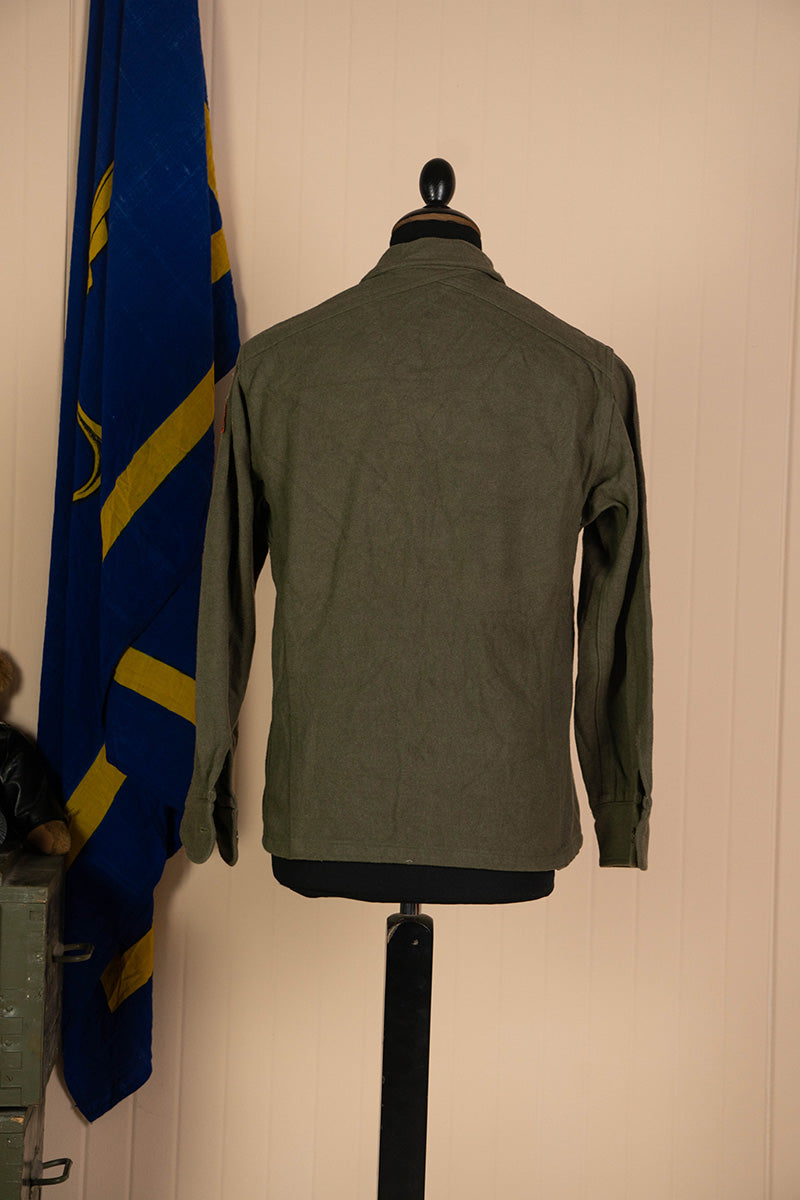 Autentica camicia OG-108 dell'esercito americano risalente alla Guerra di Corea, realizzata in resistente lana color verde oliva.