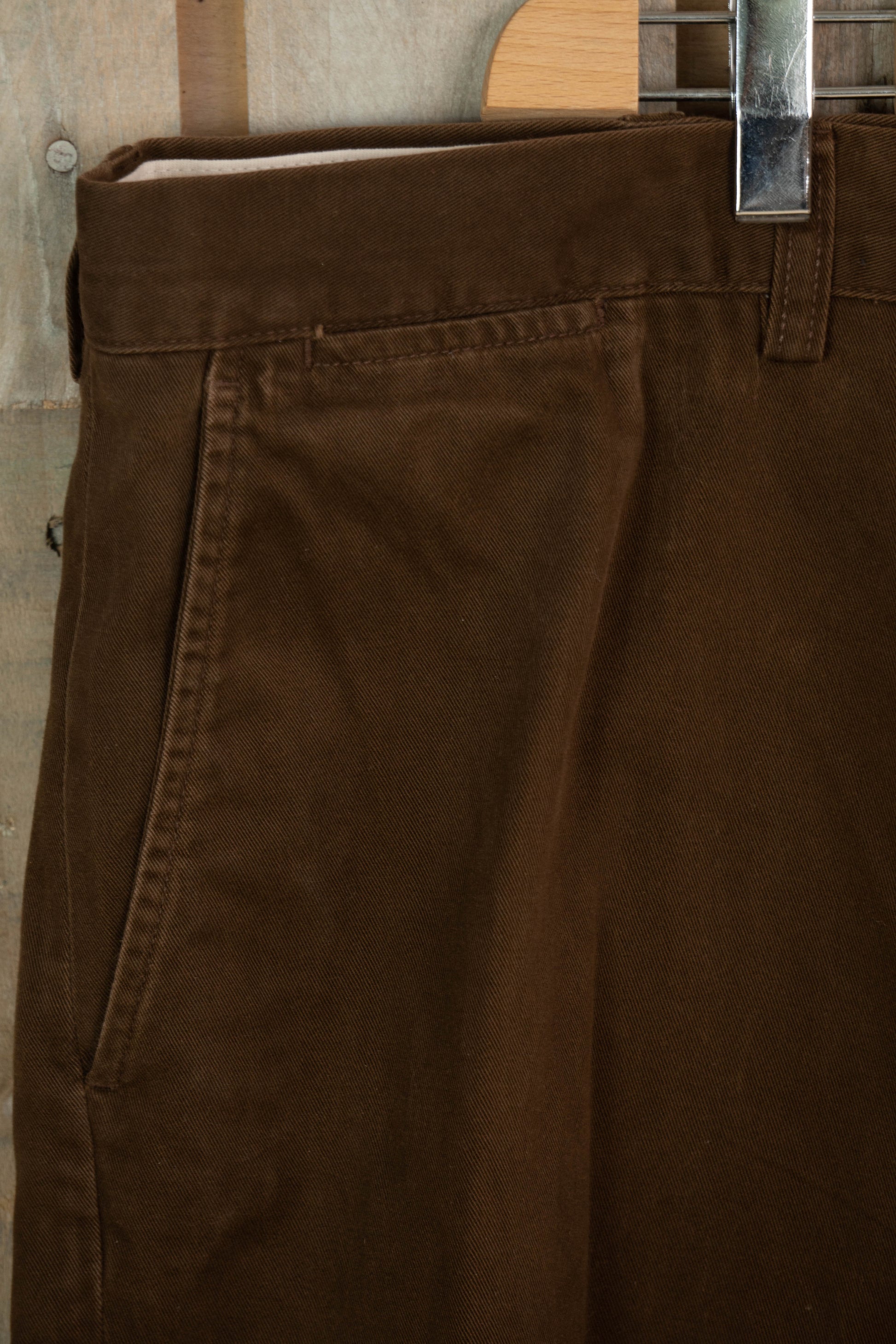 Realizzati in cotone twill marrone di qualità, questi pantaloni combinano comfort e eleganza.