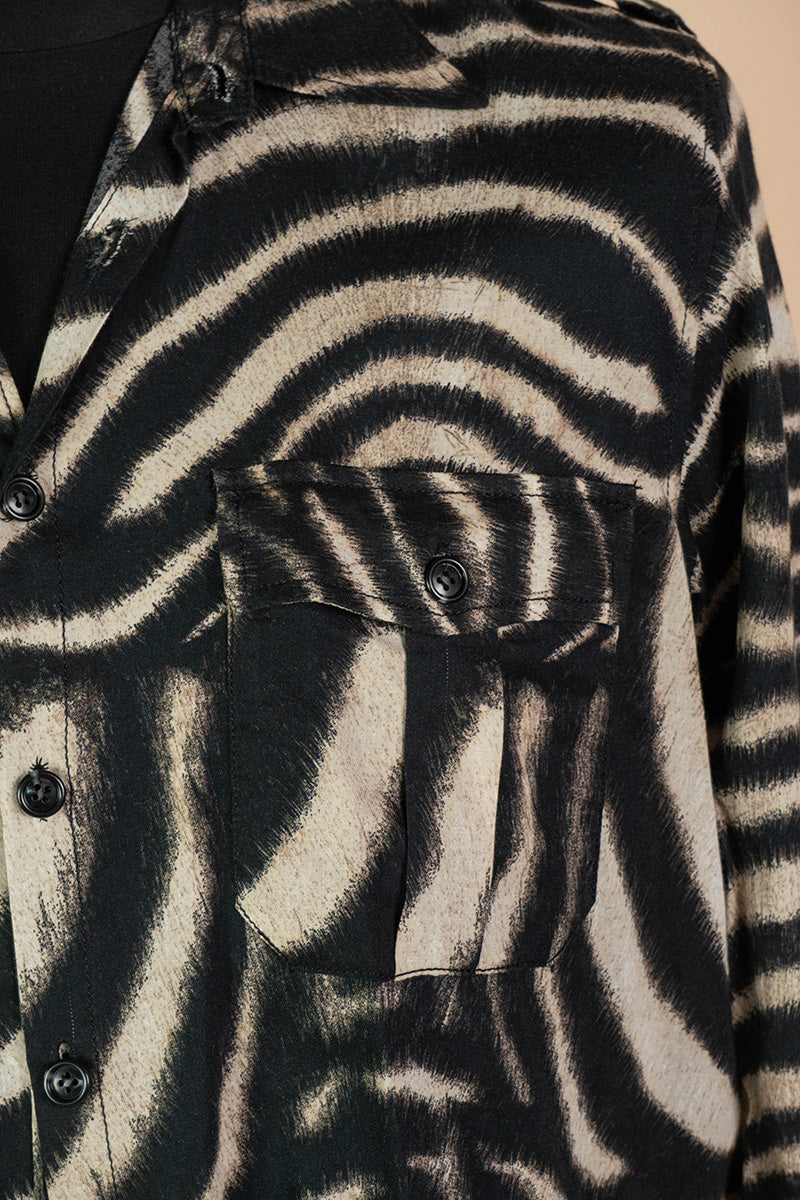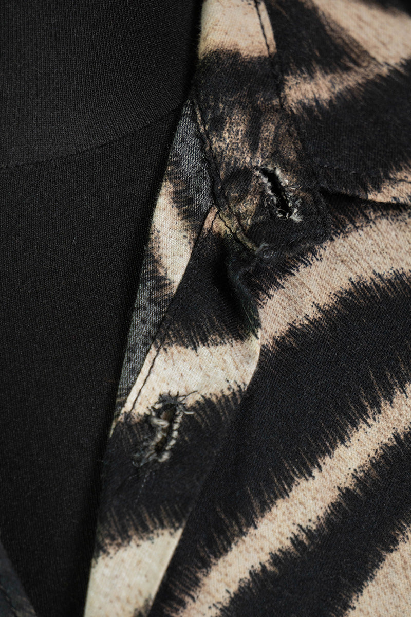 Il design presenta due tasche sul petto e asole rifinite a mano che conferiscono un'estetica volutamente rovinata.