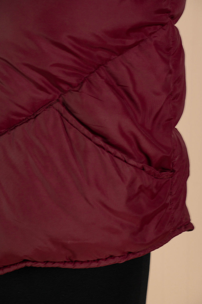 Realizzato interamente in nylon resistente bordò e grigio,con imbottitura in piuma d'oca