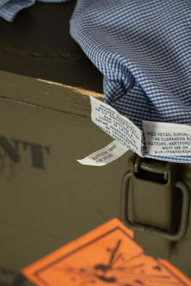 Autentica camicia vintage Polo Ralph Lauren degli anni '90 in cotone a quadrettini bianchi e azzurri.