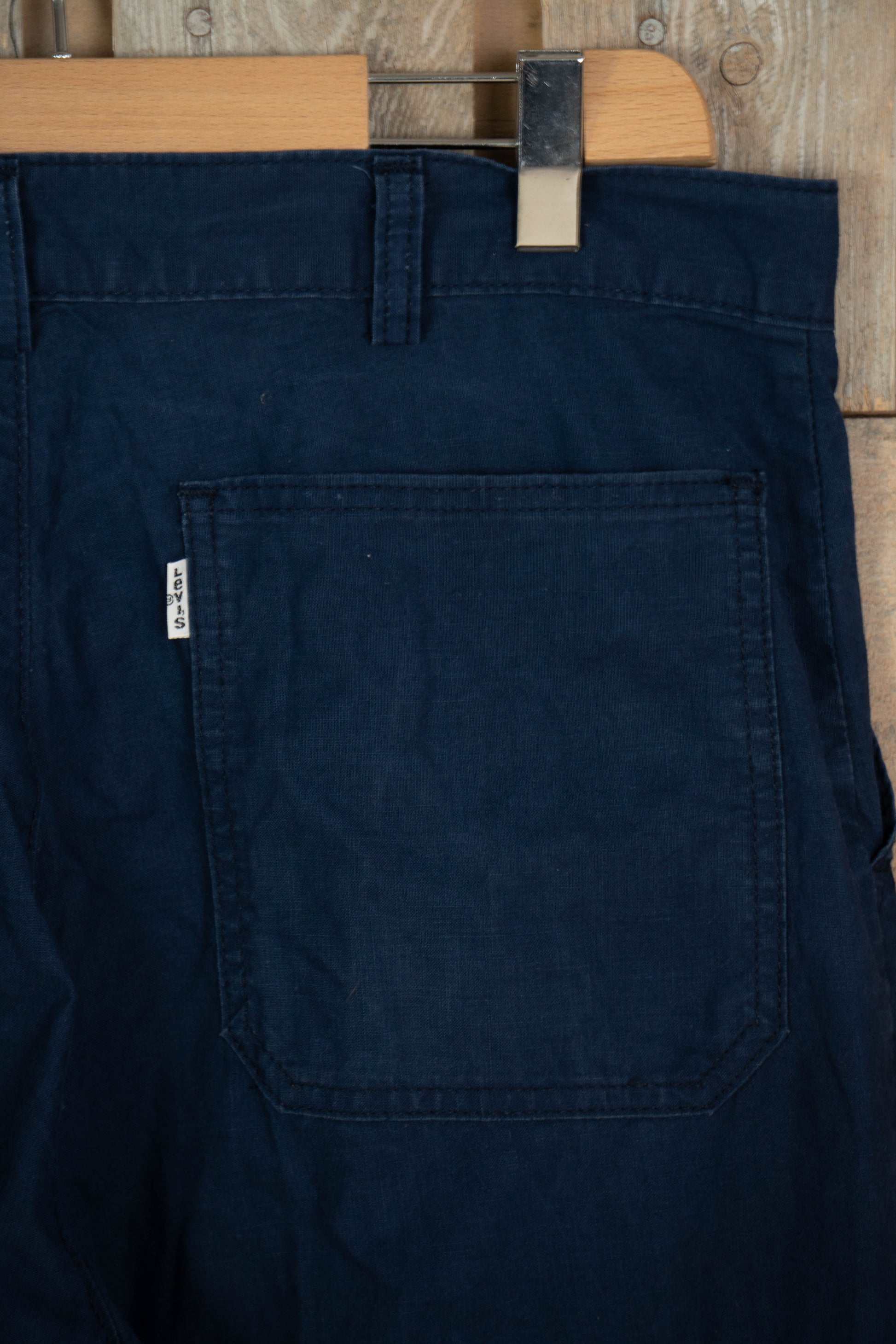 Pantaloni da lavoro Levi's vintage degli anni '90, realizzati in Francia con cotone leggero. Colore blu scuro profondo.