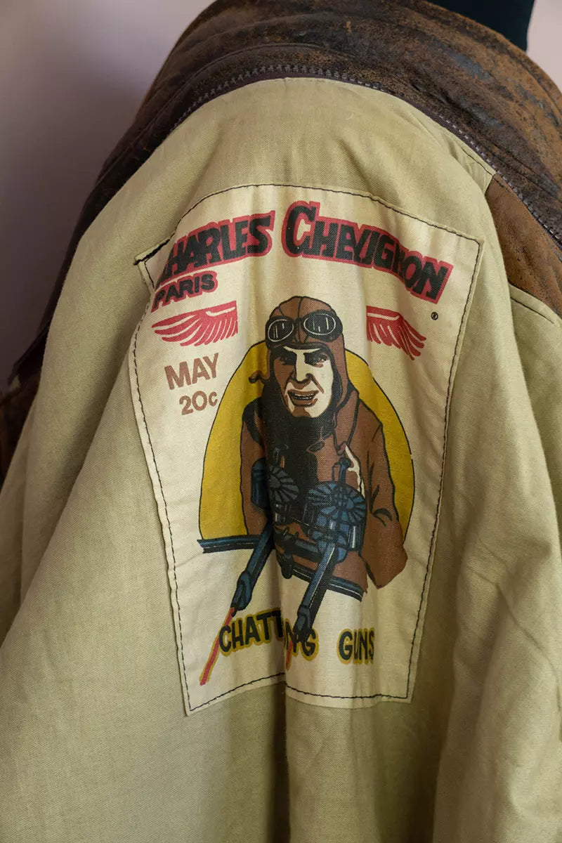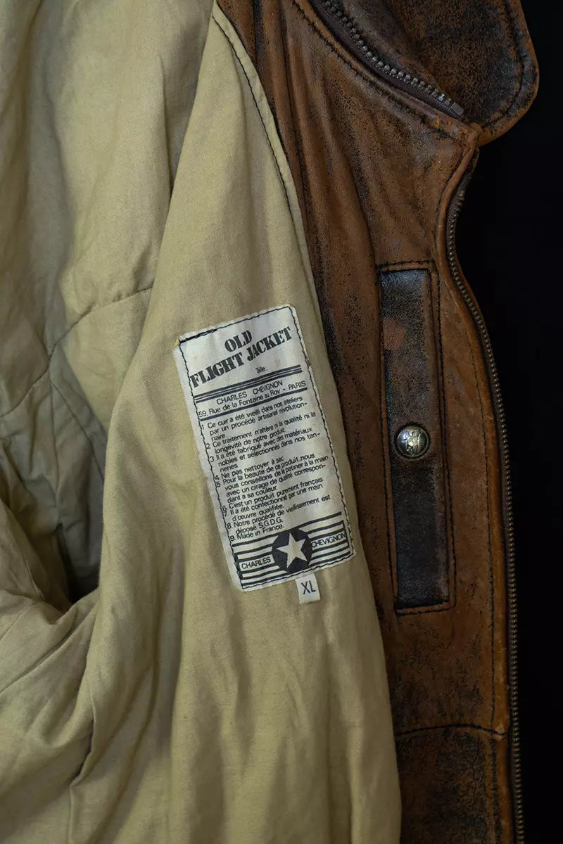 Chevignon Leather Jacket, Old fly jacket bomber aviator model. Charles Chevignon print inside the jacket.