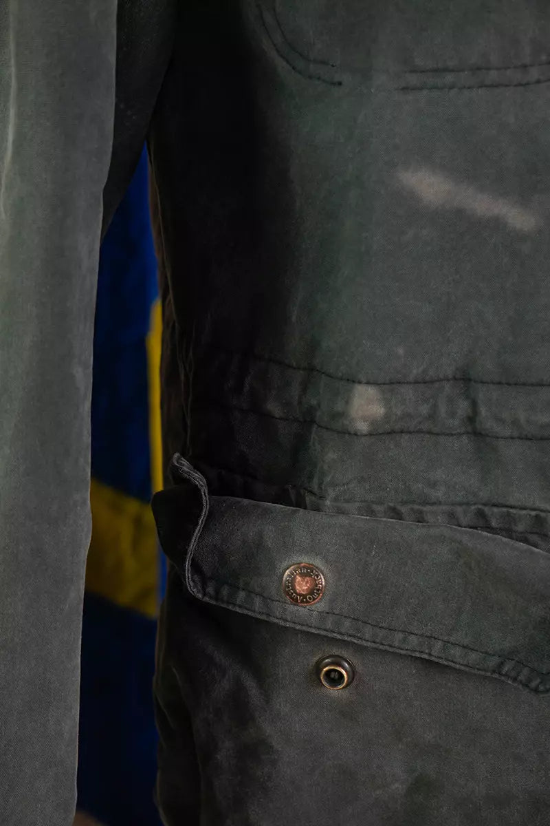 Outback Ranch Jacket, in waxed cotton. Used by Americans to work on ranches. The model is Multipocket with wool interior, perfect for the cold seasons.