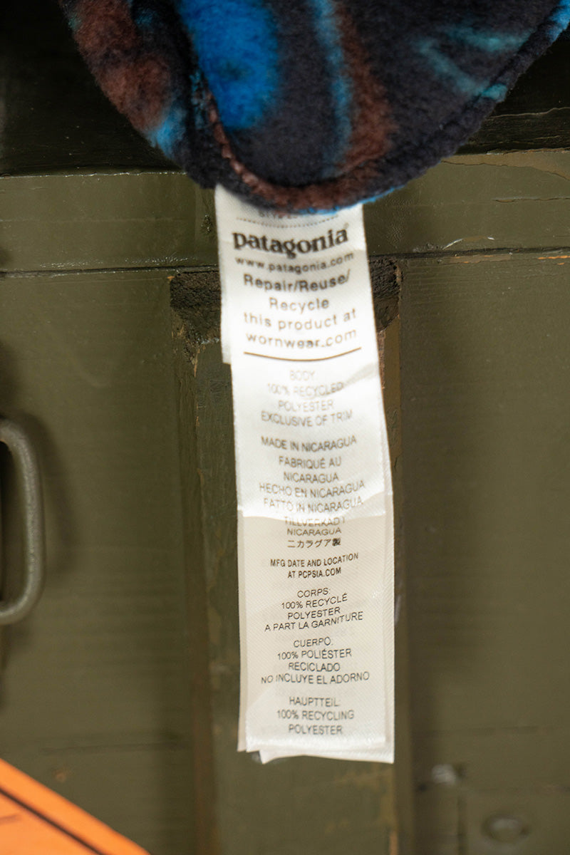 Pile Patagonia Synchilla in poliestere riciclato che reinterpreta la fantasia degli anni '80.