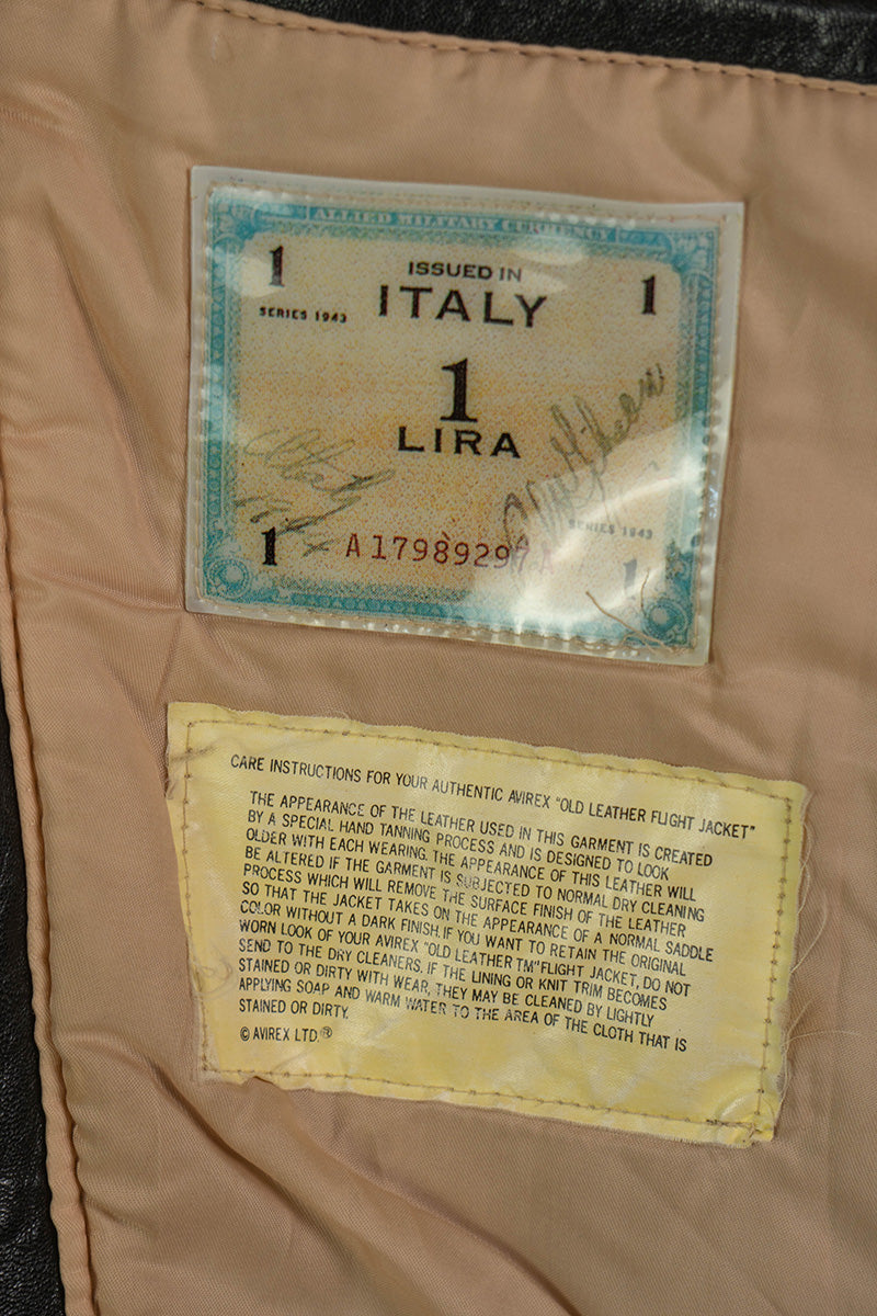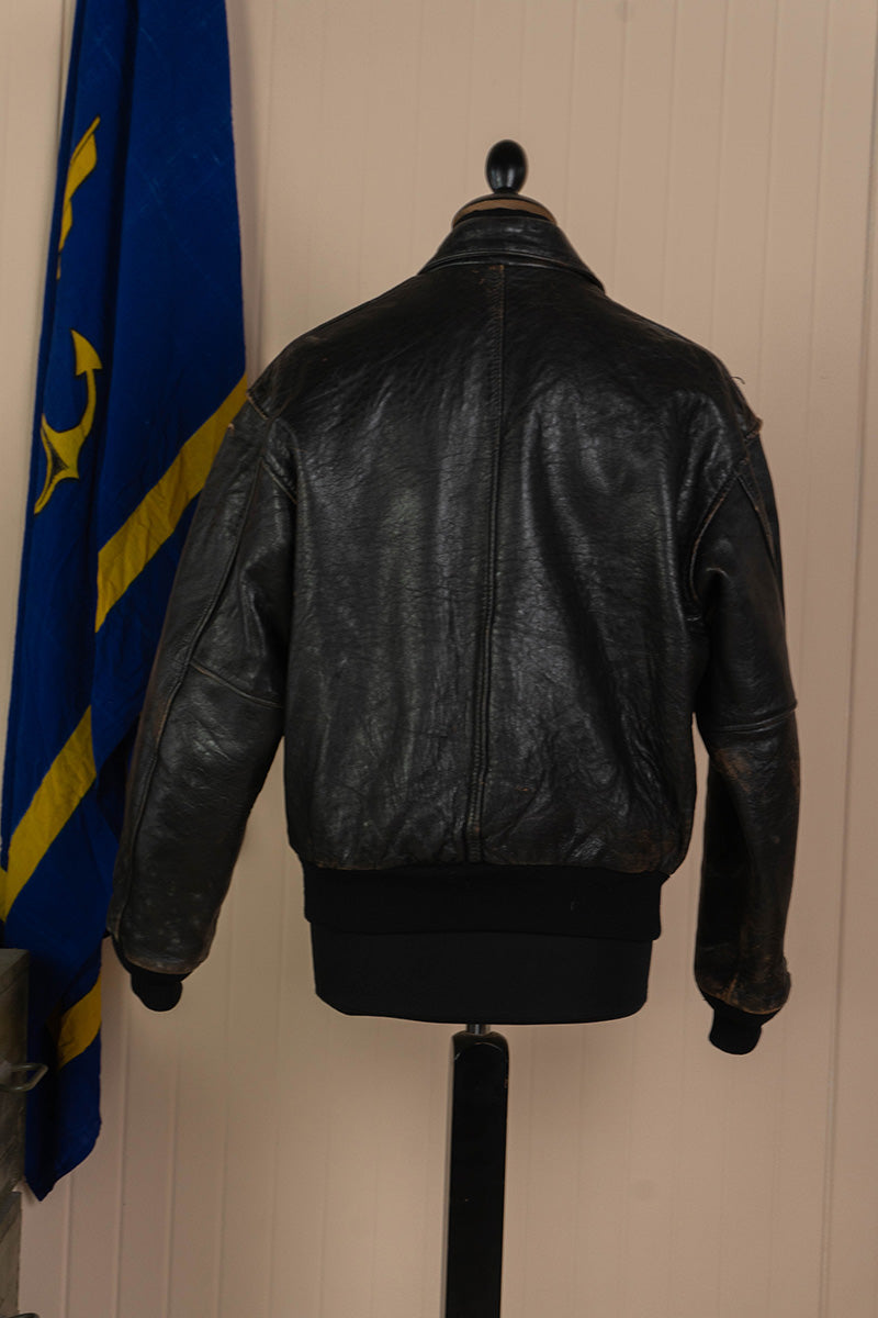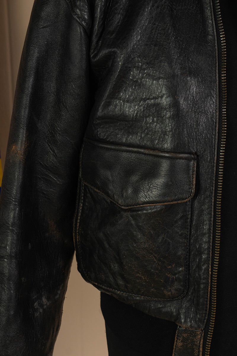 Bomber Avirex Vintage Type A-2 in Pelle nera. Classico modello a 2 tasche con canettè sulla vita e sui polsi.