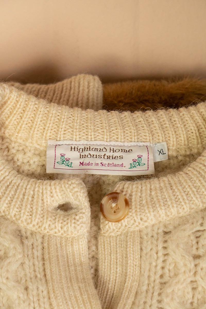 Cardigan scozzese in pura lana realizzato a mano con elegante tonalità panna.