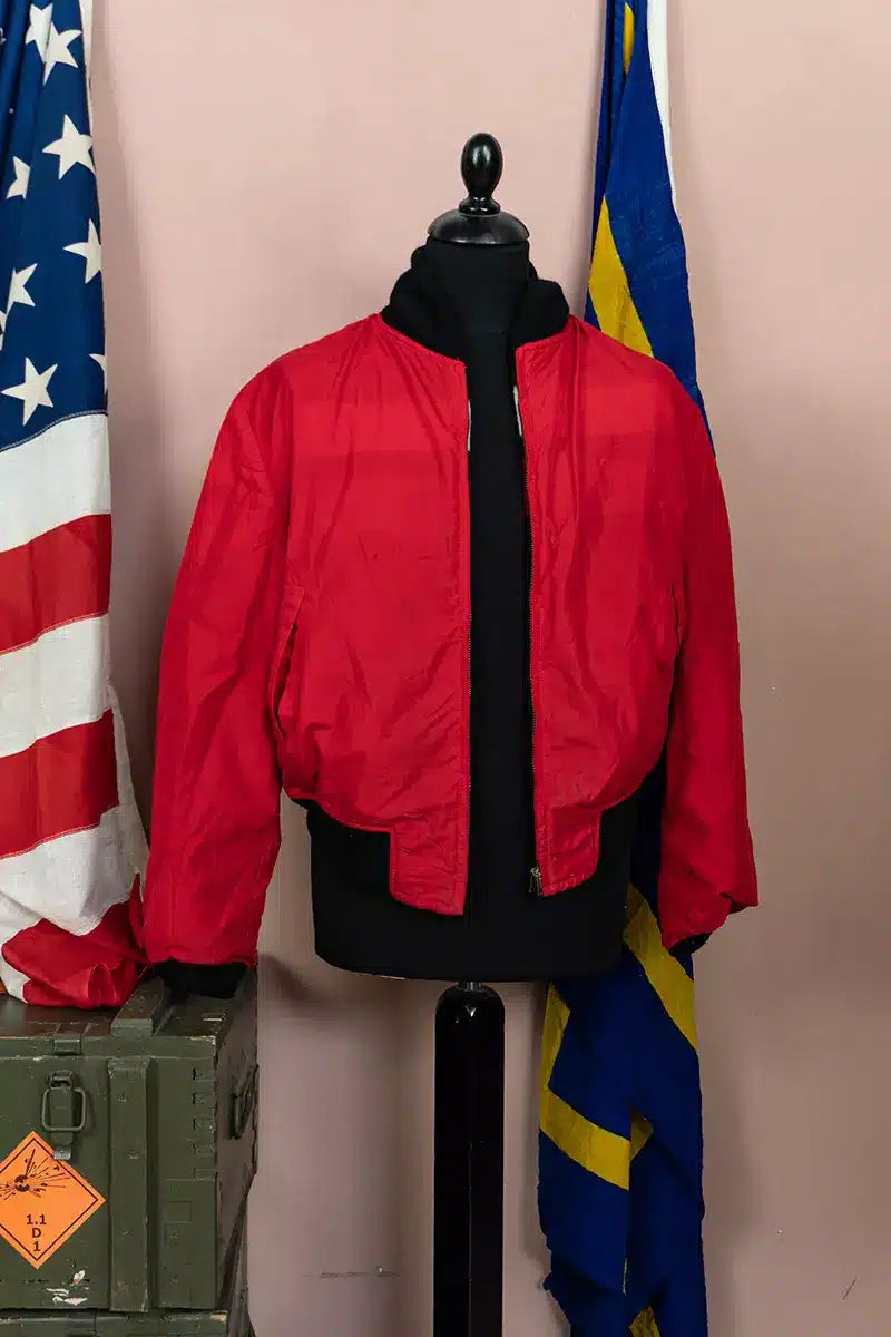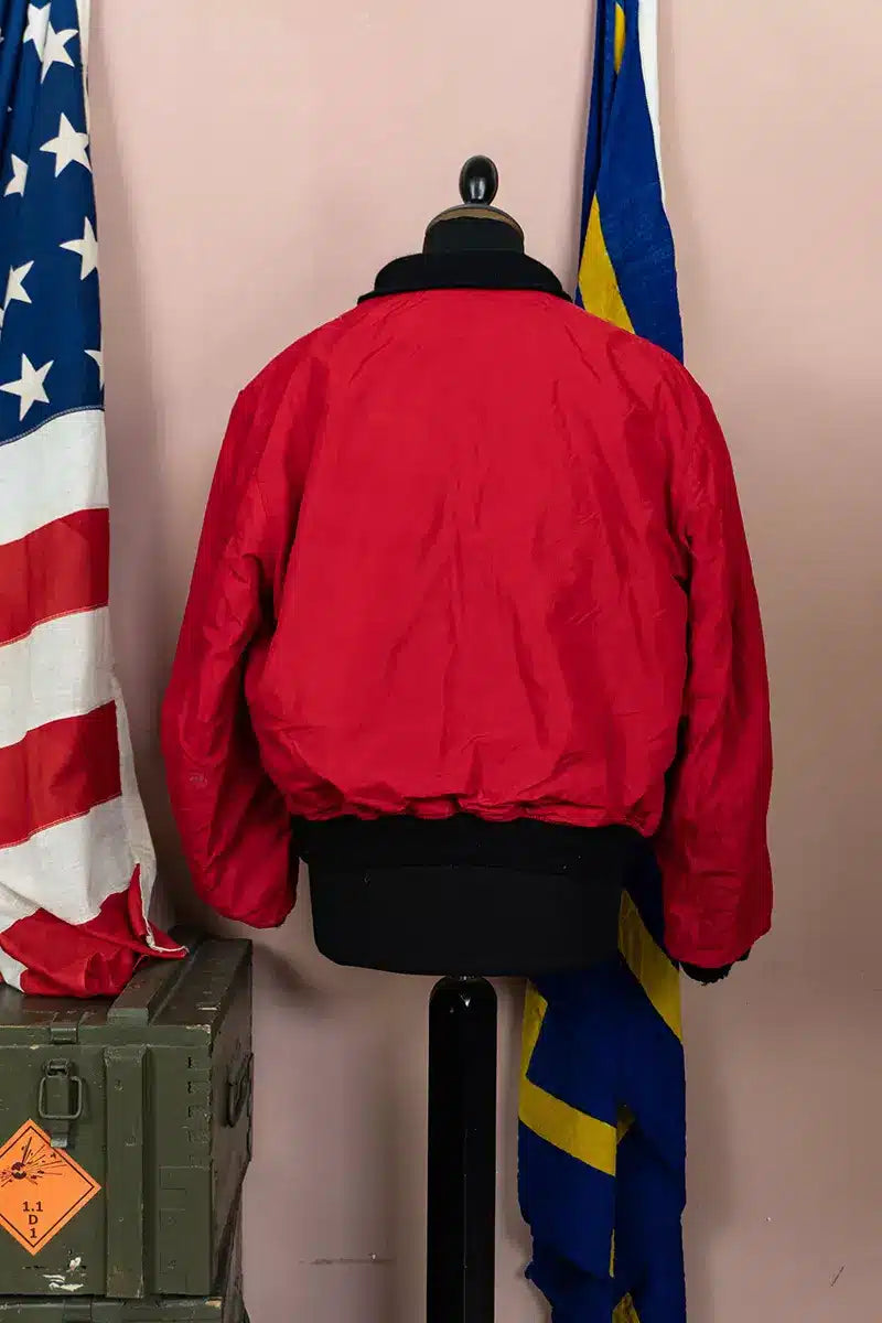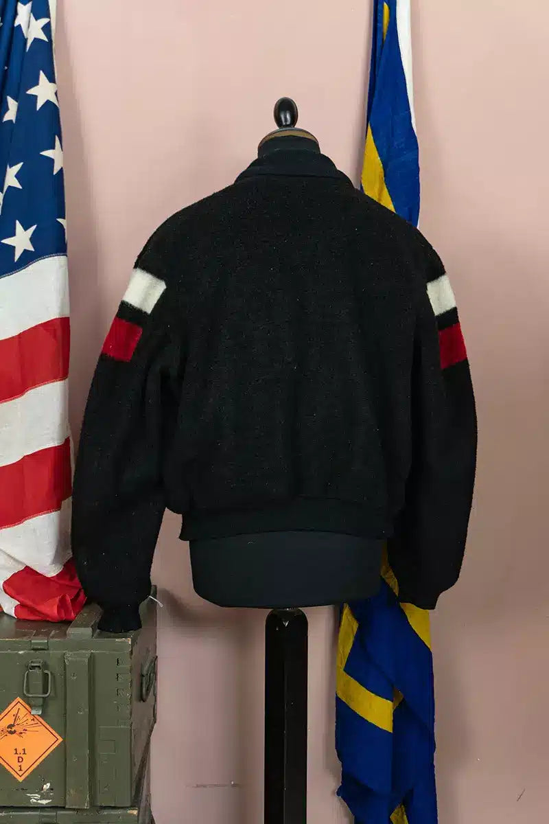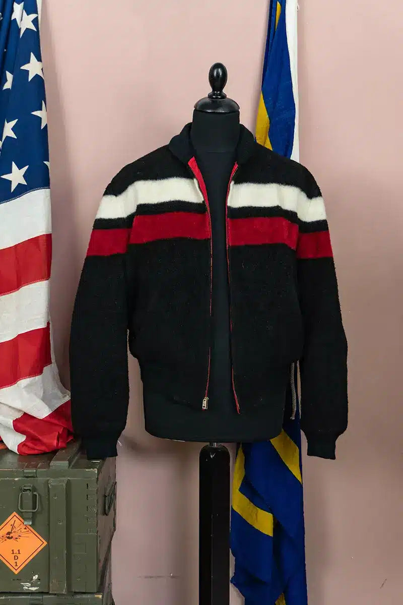 Giacca Vintage Reversibile McGregor, raro capo anni '60 '70. Modello bomber a 2 tasche Zip reverse marchiata Talon Una faccia in nylon rosso e l'altra in splendida Lana e Acrilico neri con righe bianche e rosse