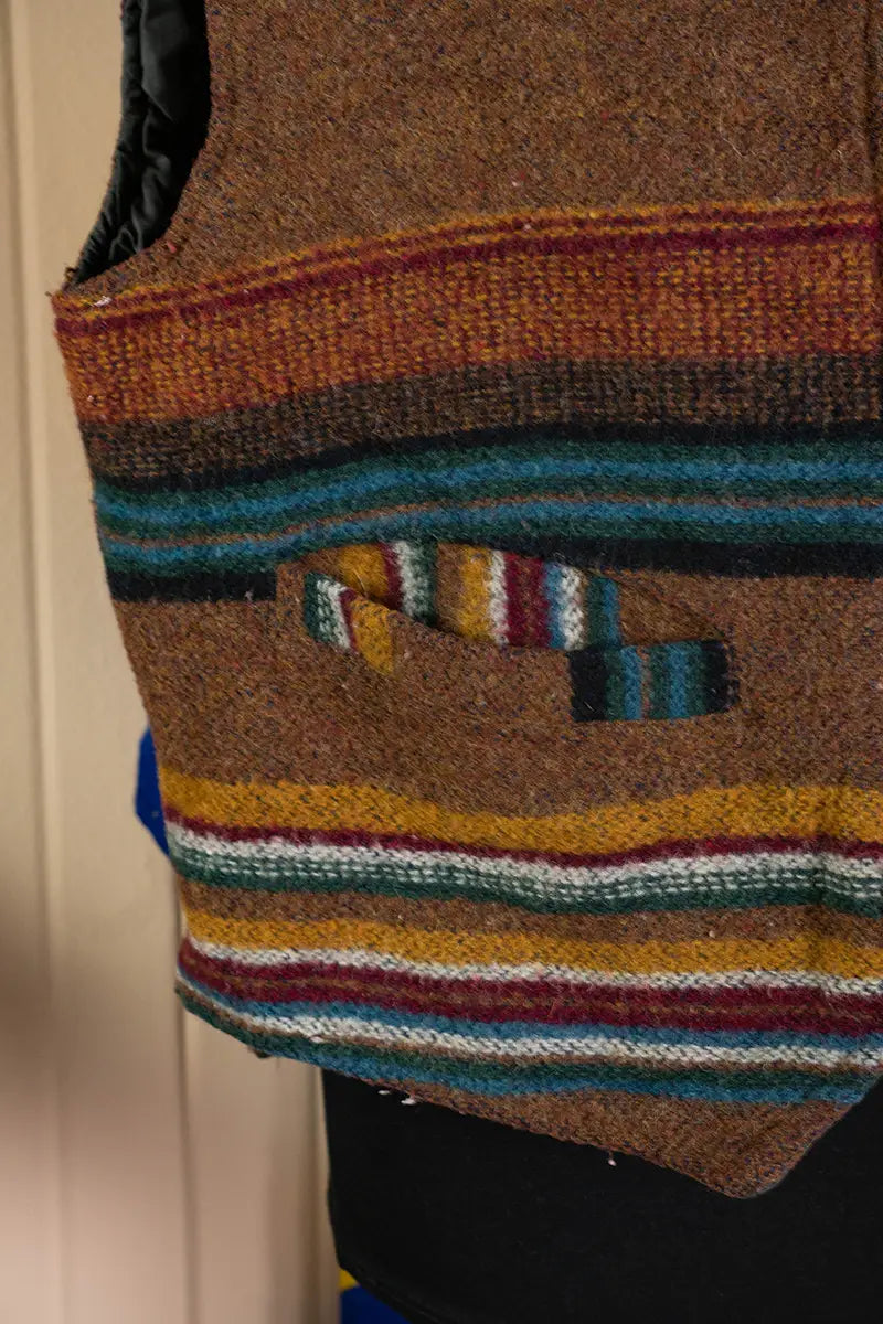 Gilet Canyon Guide Oufitters Made in USA. Modello con chiusura a Zip e 2 Tasche. Il pattern della lana utilizzata è ispirato a quello dei nativi americani.