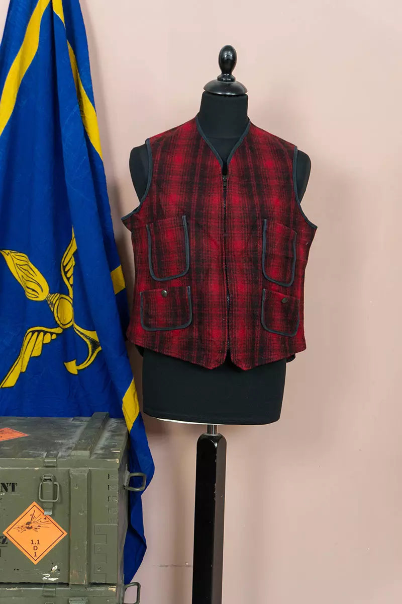 I gilet da uomo Woolrich sono un'iconica creazione del marchio Woolrich. Questo modello Anni '90 scozzese Buffalo, dotato di quattro tasche e chiusura a zip, include anche un tirante sul retro per regolare la larghezza.