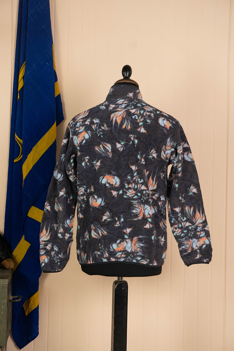 La fantasia floreale su base grigio antracite cattura l'estetica vintage del marchio, mentre il design vintage con taschino sul petto e bottoni a pressione dona funzionalità e carattere retrò.