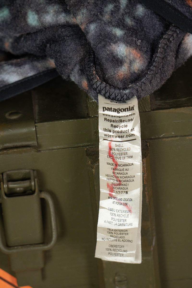 Pile Patagonia Synchilla in poliestere riciclato che reinterpreta la fantasia degli anni '80.