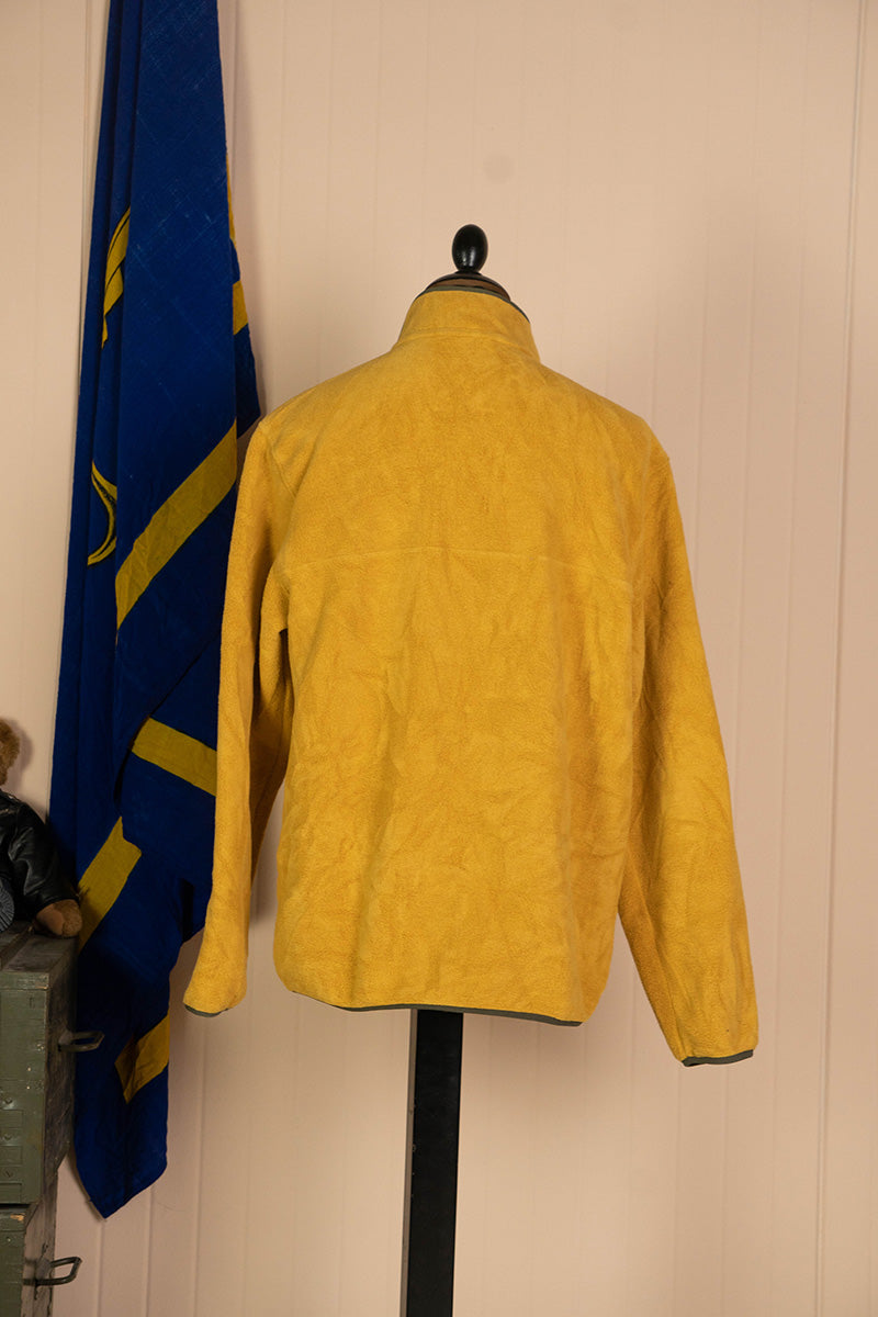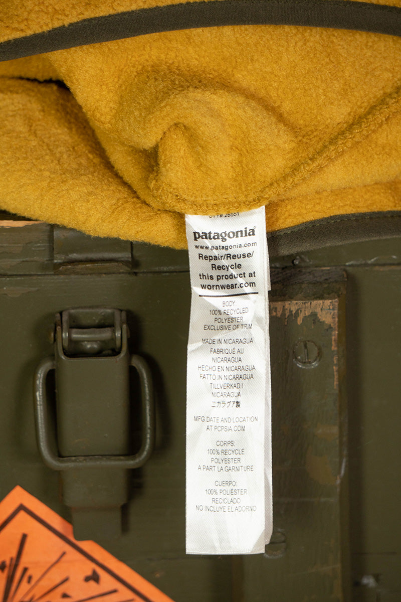 Pile Patagonia Synchilla in poliestere, caratterizzato dal colore giallo con dettagli verde oliva