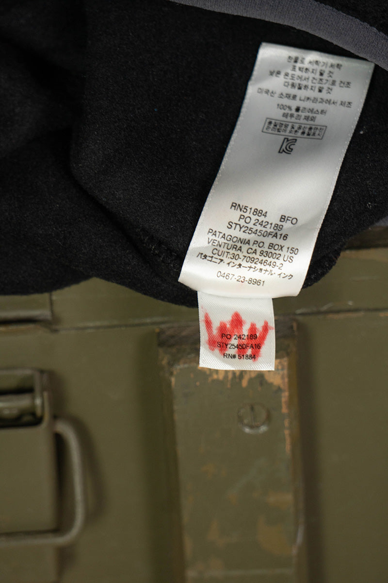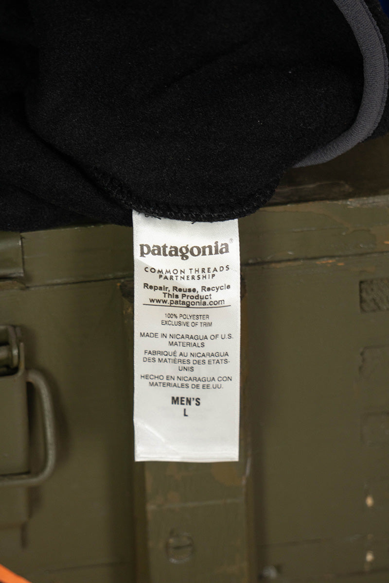 Pile Patagonia Synchilla in poliestere, caratterizzato dal colore nero con dettagli grigi