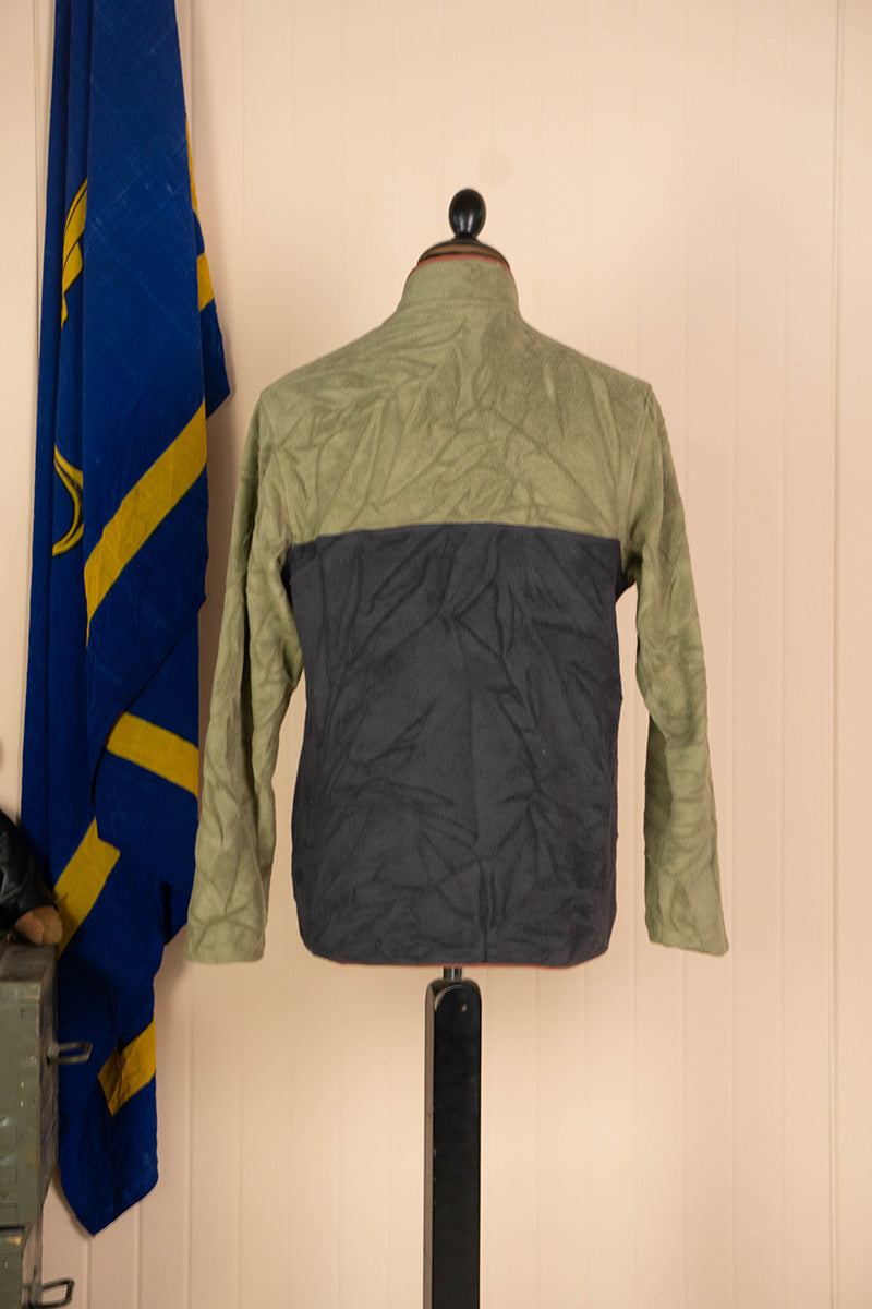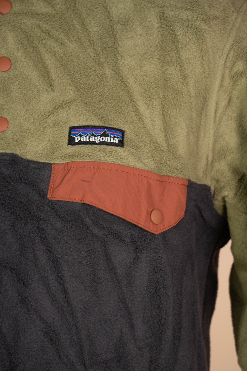 Pile Patagonia Synchilla in poliestere, caratterizzato dalla combinazione cromatica verde e grigio.