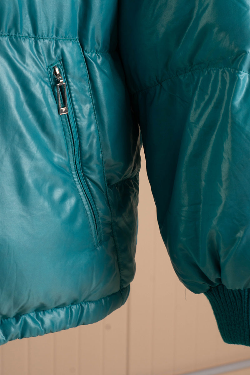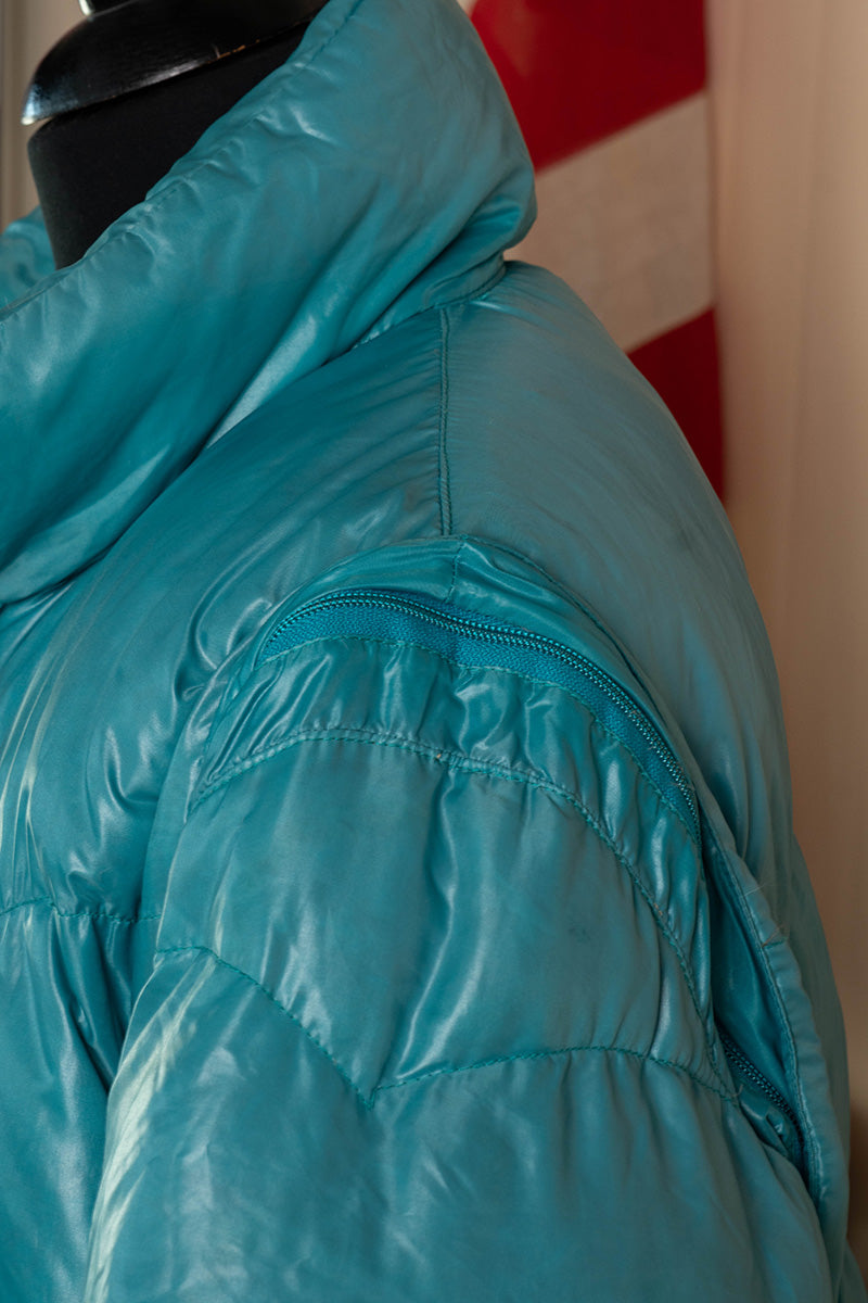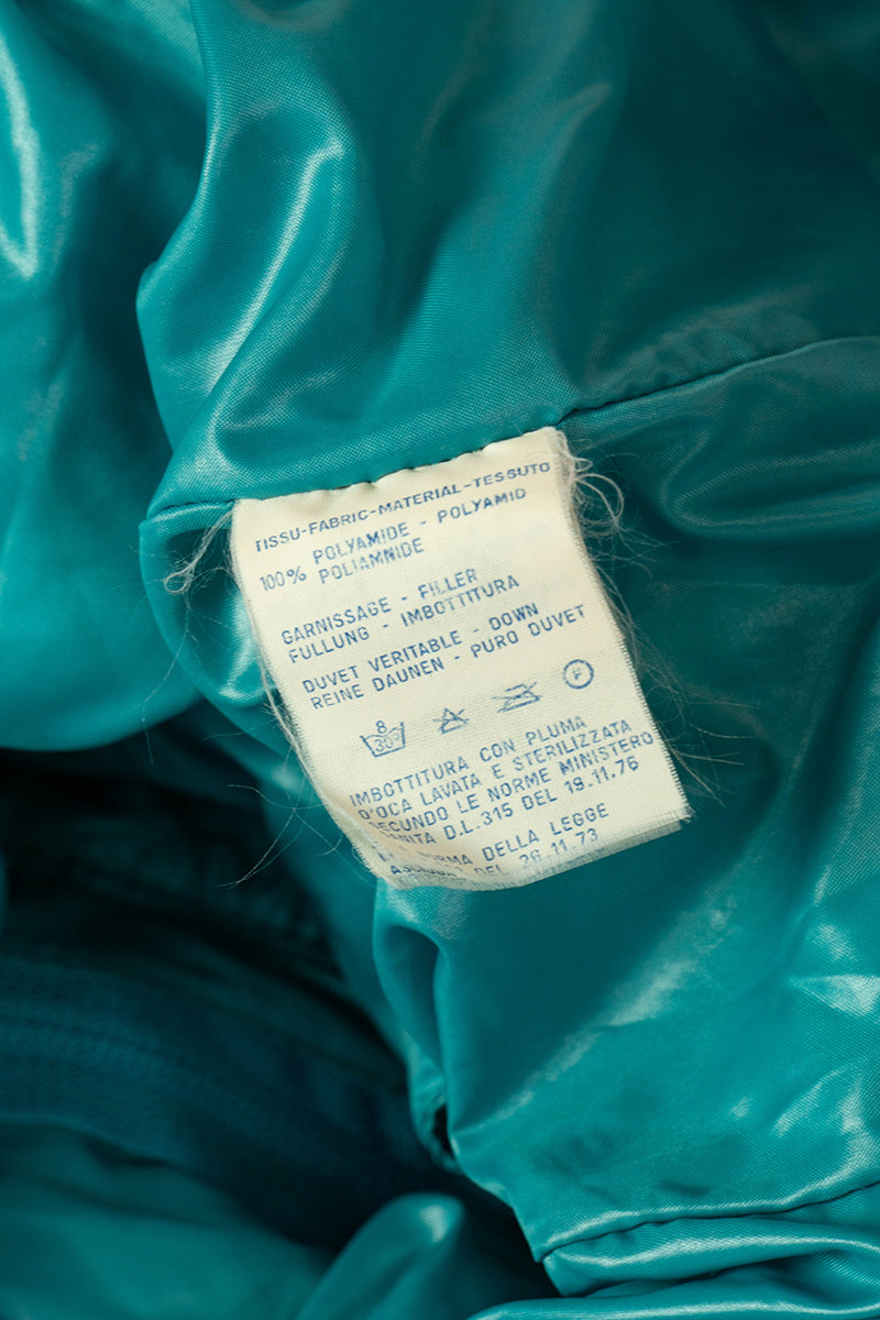 Piumino Smanicabile Millet Vintage anni '90, prodotto in francia e imbottito di vera piuma d'oca. Colore turchese scuro.