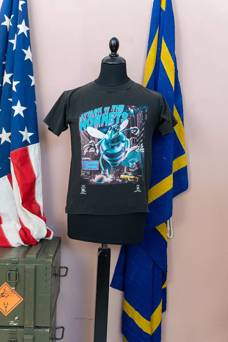 T-Shirt Vintage della squadra di basket Charlotte Hornets, con stampa Attack of the Hornets.